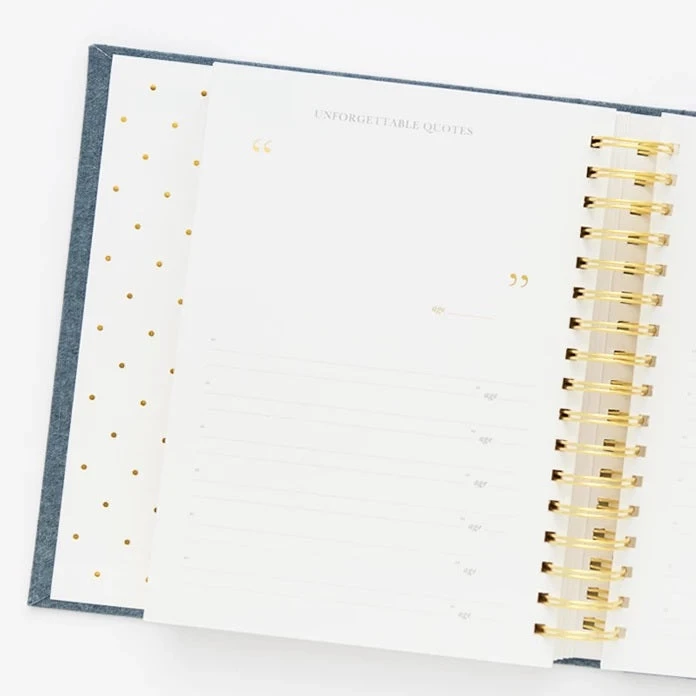 So much is said and shared during this incredible time and you don’t want to miss one word of it. Sugar Paper also includes pages to capture those “funny things you say, sweet moments and everything in between.” Unforgettable quotes from the mouths of babes or close family and friends have a special spot too.Â