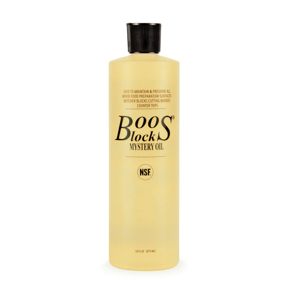 - John Boos Mystery Oil is recommended for care of tops & blocks that are used as a working, cutting surface. This fine oil is a mixture of white mineral oil and beeswax, and will give your John Boos product the same quality finish as the factory.