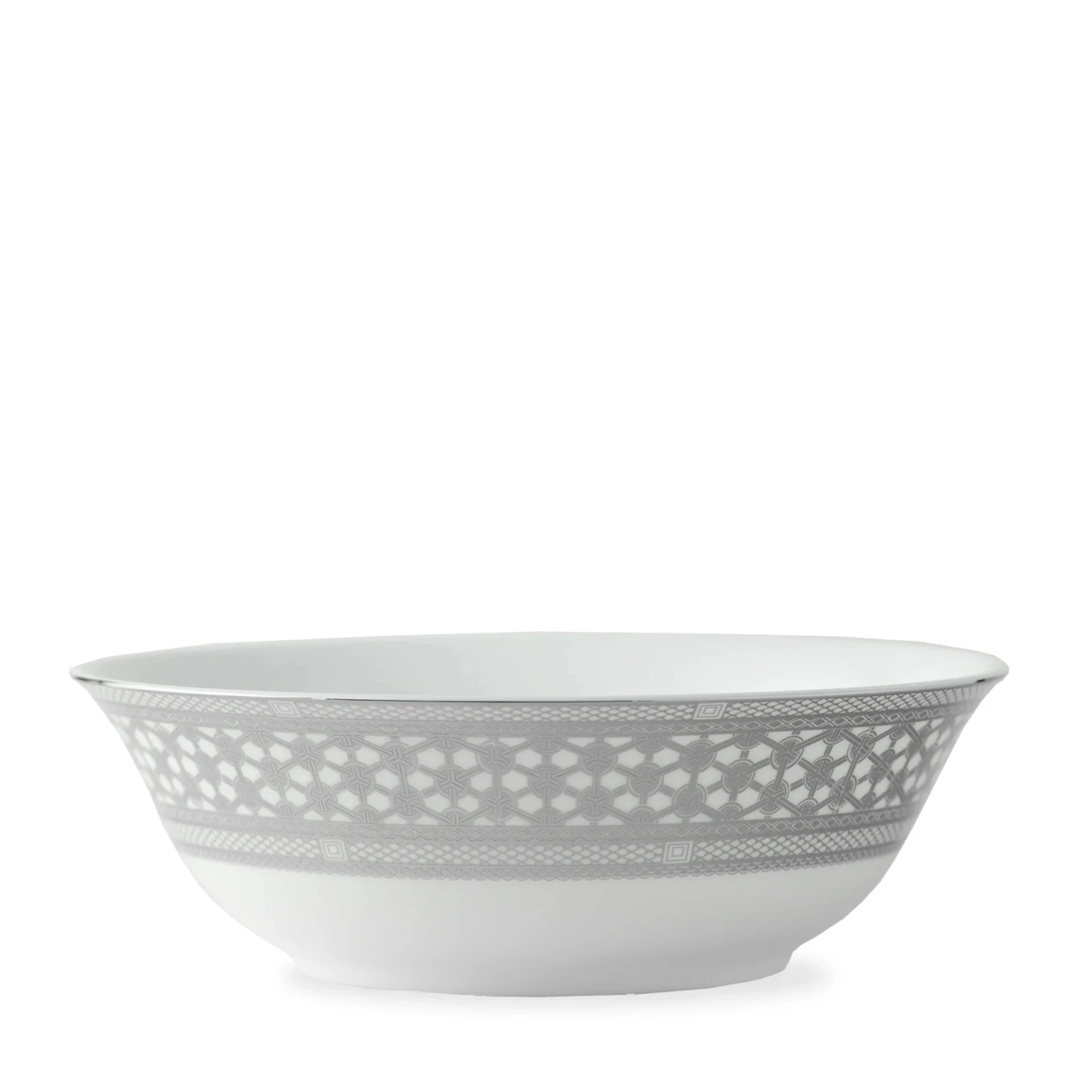 Caskata’s beautiful Hawthorne pattern is exquisite in platinum on this perfectly proportioned serving bowl. On creamy white bone china the highly detailed, geometric weave of the pattern softly reflects light, bringing an elegant sophistication to the table.