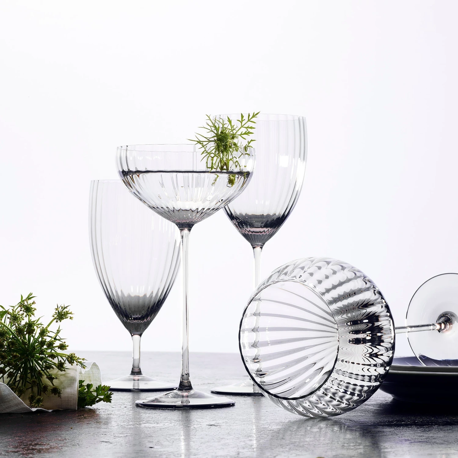 Mouth-blown beauties from a centuries-old glassworks in the rural Czech Republic. Archival forms, elongated and elevated for a very modern feel, these are glasses unlike any you’ve held. The optic bowls  artfully capture the light, playfully reflecting it back, while the elegant stems fit effortlessly in your hands. Honestly, these are glasses that demand to be savored as much as whatever vintage you’re drinking from them.