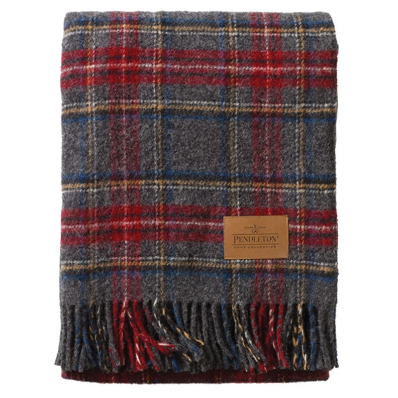 This pure virgin wool throw is softly napped and the perfect size to curl up with on the sofa or toss in the car. Each one is still woven in Pendleton’s American mills and comes with a convenient leather carriers. Called “steamer rugs” in the early 20th century, these blankets were a warm, welcome companion for those who traveled by horse-drawn carriage, train or boat. As a California customer raves, “Just right for a picnic, stadium or just around the house.”