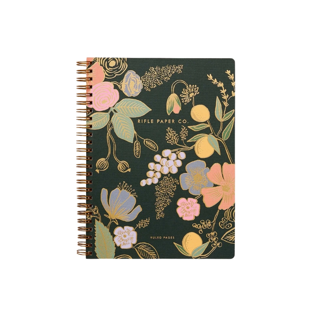 Hit the books with this softcover spiral notebooks, featuring full-color covers with gold foil accents, printed on a heavy-weight textured paper. The notebook has 150 ruled pages, a sturdy double-spiral binding, and pockets for extra storage.