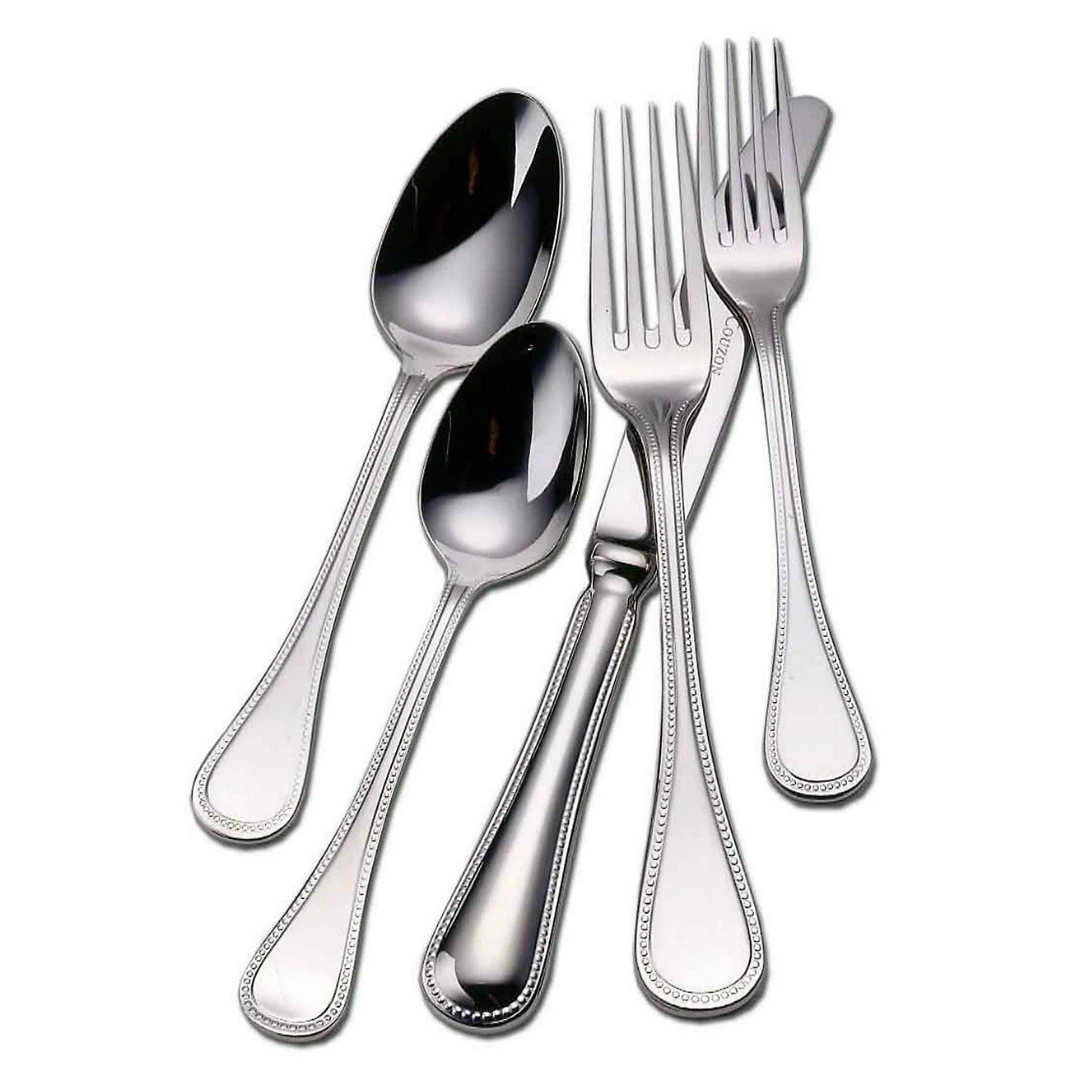 Couzon’s stainless steel Le Perle flatware set has a high polish shine that will elevate any table setting.