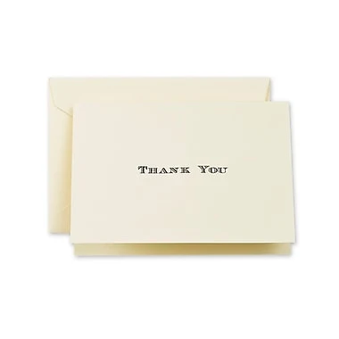 The shaded Roman font, engraved using black ink, gives this thank you note a distinct classic look. A bold way to express your appreciation for their thoughtfulness. Matching envelopes are included.