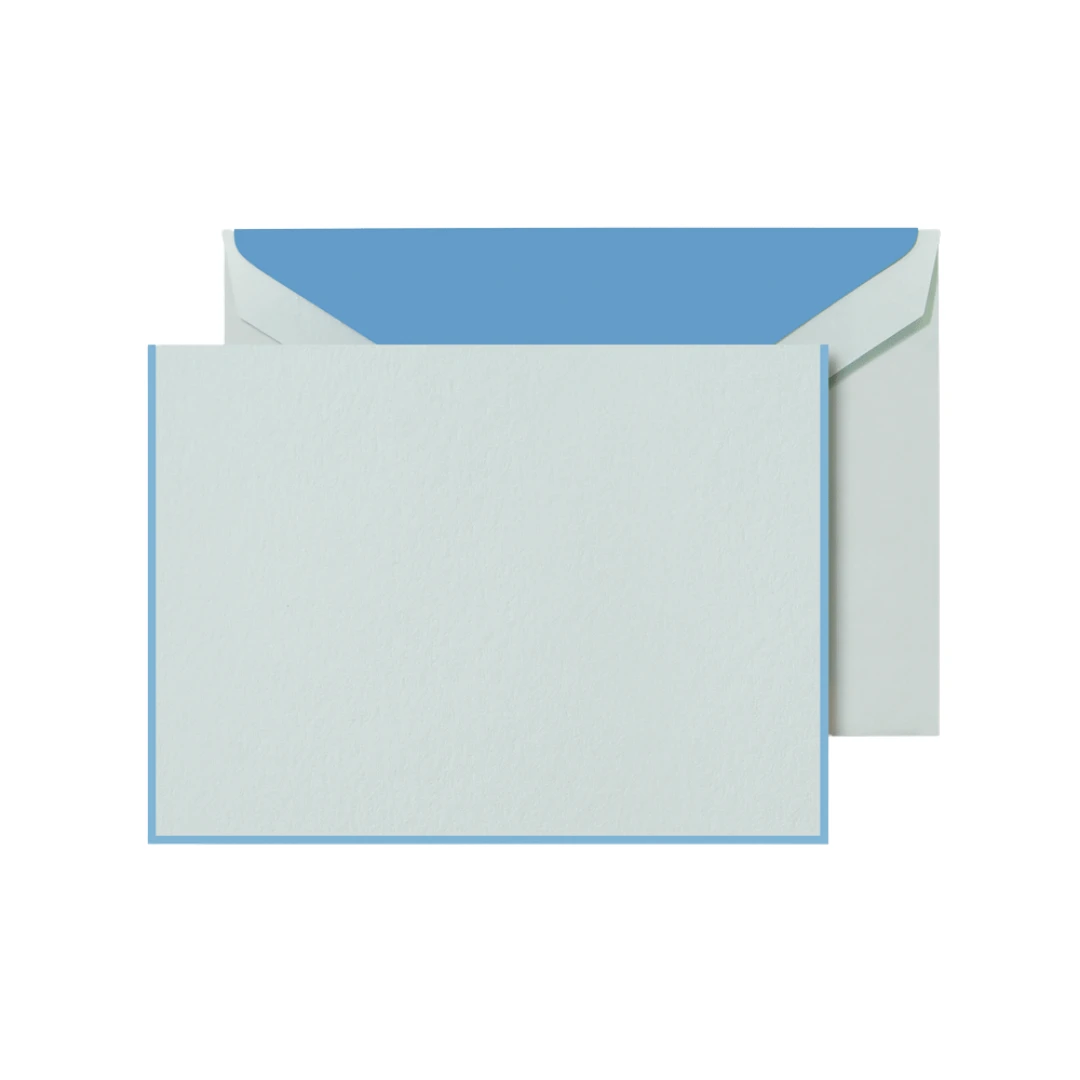 This simple yet striking note on our serene beach glass blue cotton paper is bordered in Newport blue presents the perfect canvas for everything from a casual note for a colleague to a thank you to loved ones near or far.