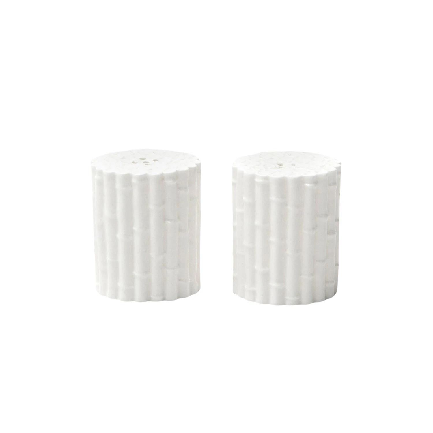 Bamboo-inspired cylindrical salt and pepper shakers.