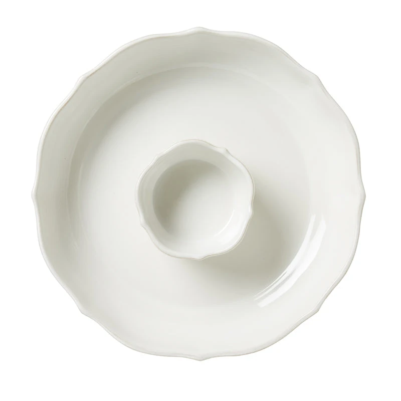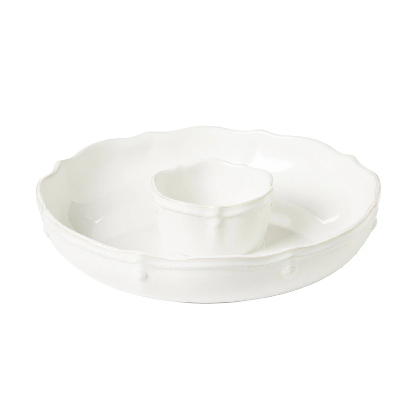Keep it chic with this chip and dip server that elevates the humble to something a bit more special. Subtly embellished with fluting and Juliska’s berry and thread motif, a central bowl is surrounded by a larger basin to easily present your favorite chips and dips – with a splash of elegance.