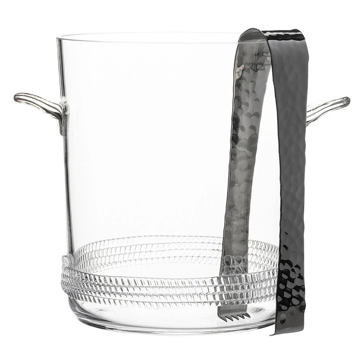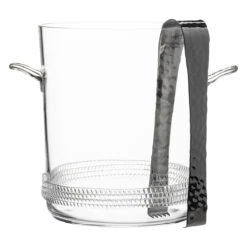 From Juliska’s Dean Collection – this handsome, mouth blown glass is grounded with a subtle glass rope base in this beautiful ice bucket and tongs is particularly perfect when brimming with ice cold bubbly.Â