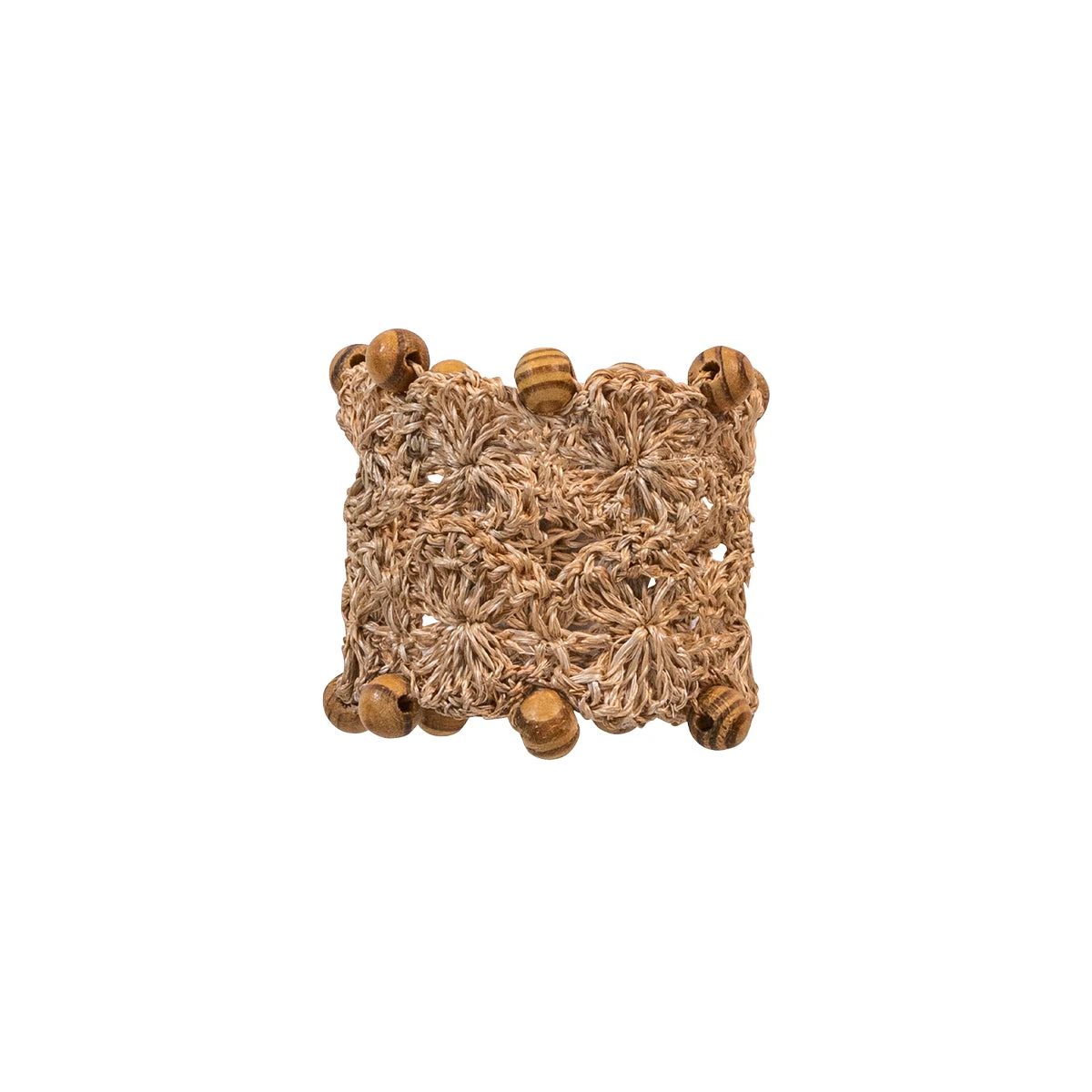These hand-crafted napkin rings are made of intricately woven Abaca fibers in whitewash and embellished with wooden beads for a look that is naturally textural, casual, and a bit bohemian – yet when encircling a lovely linen napkin – undeniably put-together and chic.