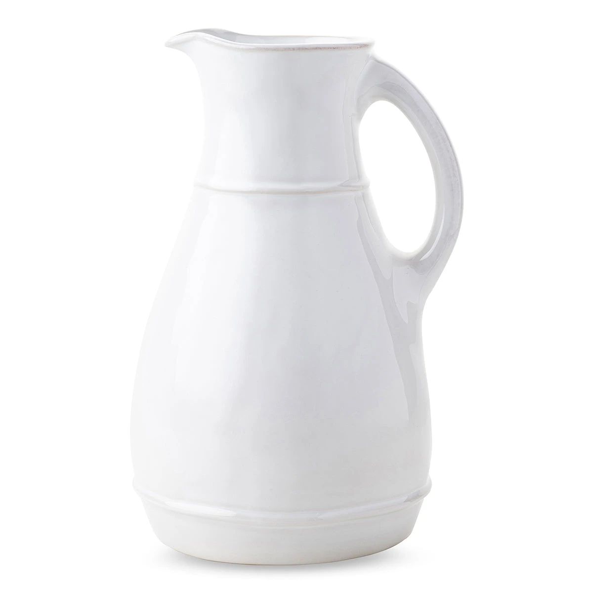 From fresh juices to a bundle of colorful blooms, this whitewash ceramic pitcher offers an organic texture that blends everyday elegance with practicality.Â