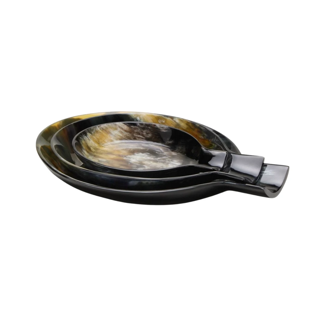 The Lorant nesting spoon rest—handcrafted from horn—are naturally neutral and gorgeously mottled. Each piece has a deep dish and ample lip to prevent drips and spills.