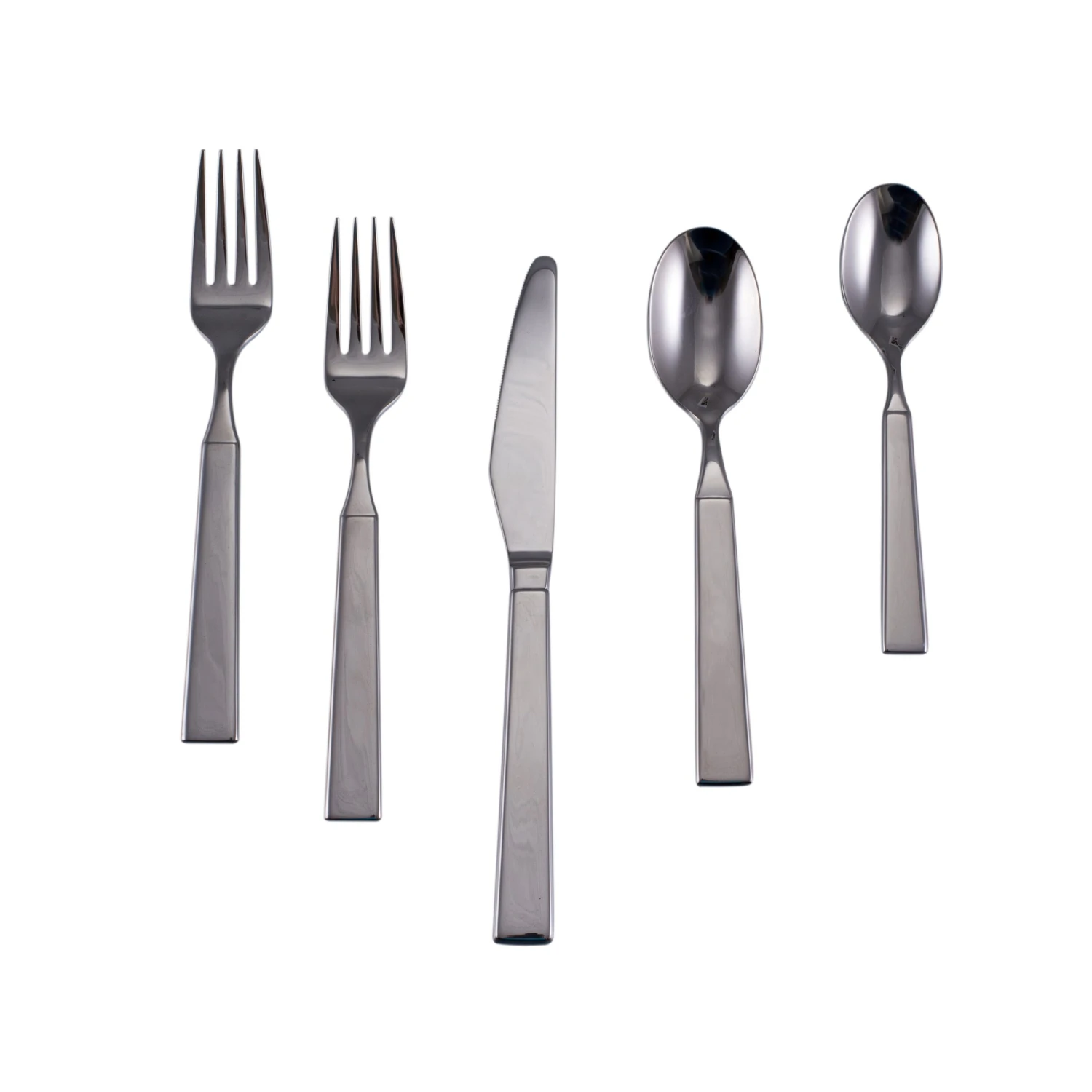 The stainless steel 5-piece Woodstock flatware set adds a simple, versatile aesthetic to your casual table settings or special events. A contemporary polished handle with a classic squared end makes these pieces easy to hold and adaptable to a variety of table settings.