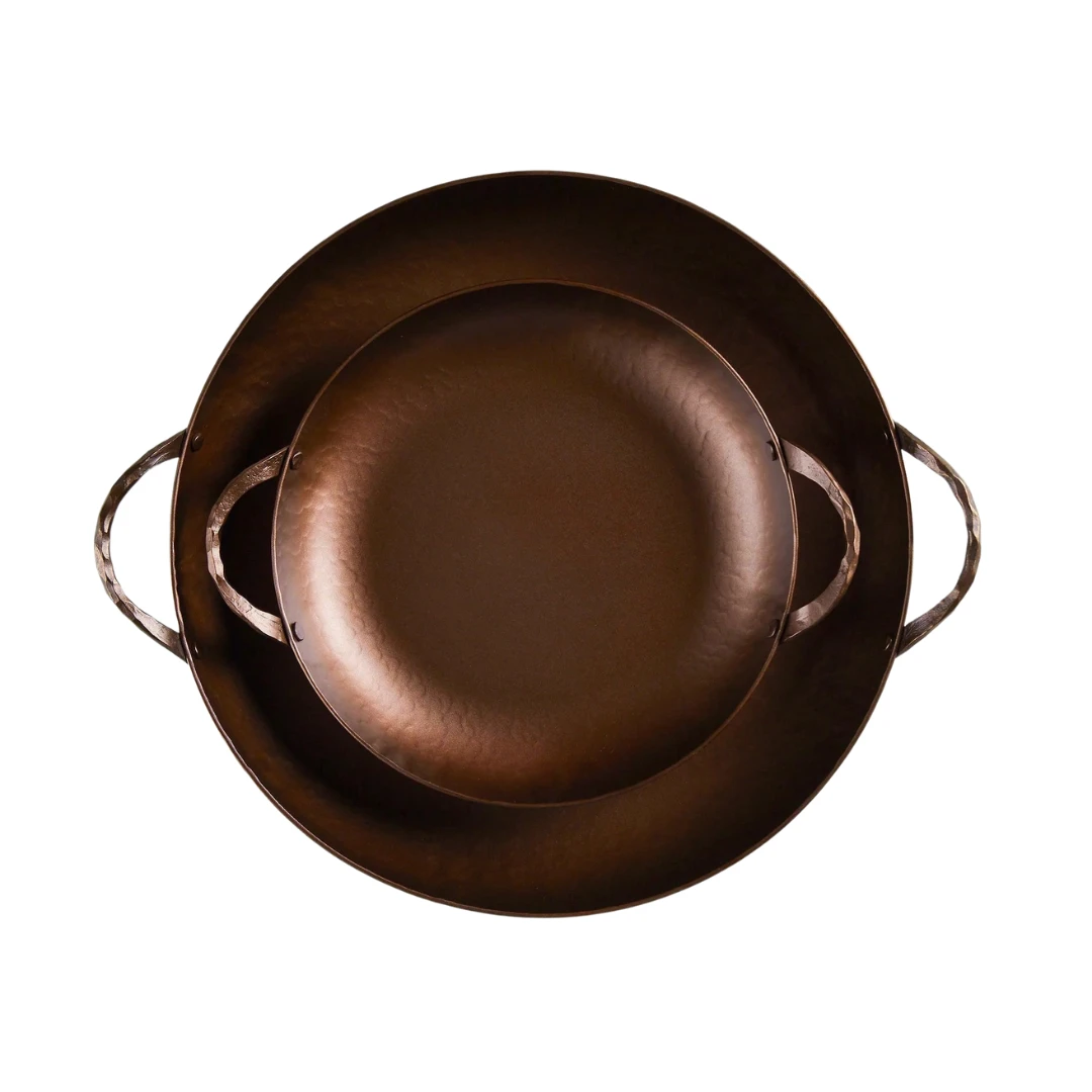 Make a statement and embrace cooking for a crowd with the stunning new 17″ party pan from Smithey, the largest creation to date. Hand-forged by Smithey’s skilled blacksmiths and destined to be a treasured family heirloom, this pan will have you thinking big. Perfect paella? Sure thing. Spatchcock a turkey? No problem. Fry up a dozen eggs and bacon at once? Why not? Did we mention that it’s BIG? It also functions as a beautiful serving piece for those times that call for cooler appetizers or oysters on the half shell. You’ll have fun with this one – use it well!