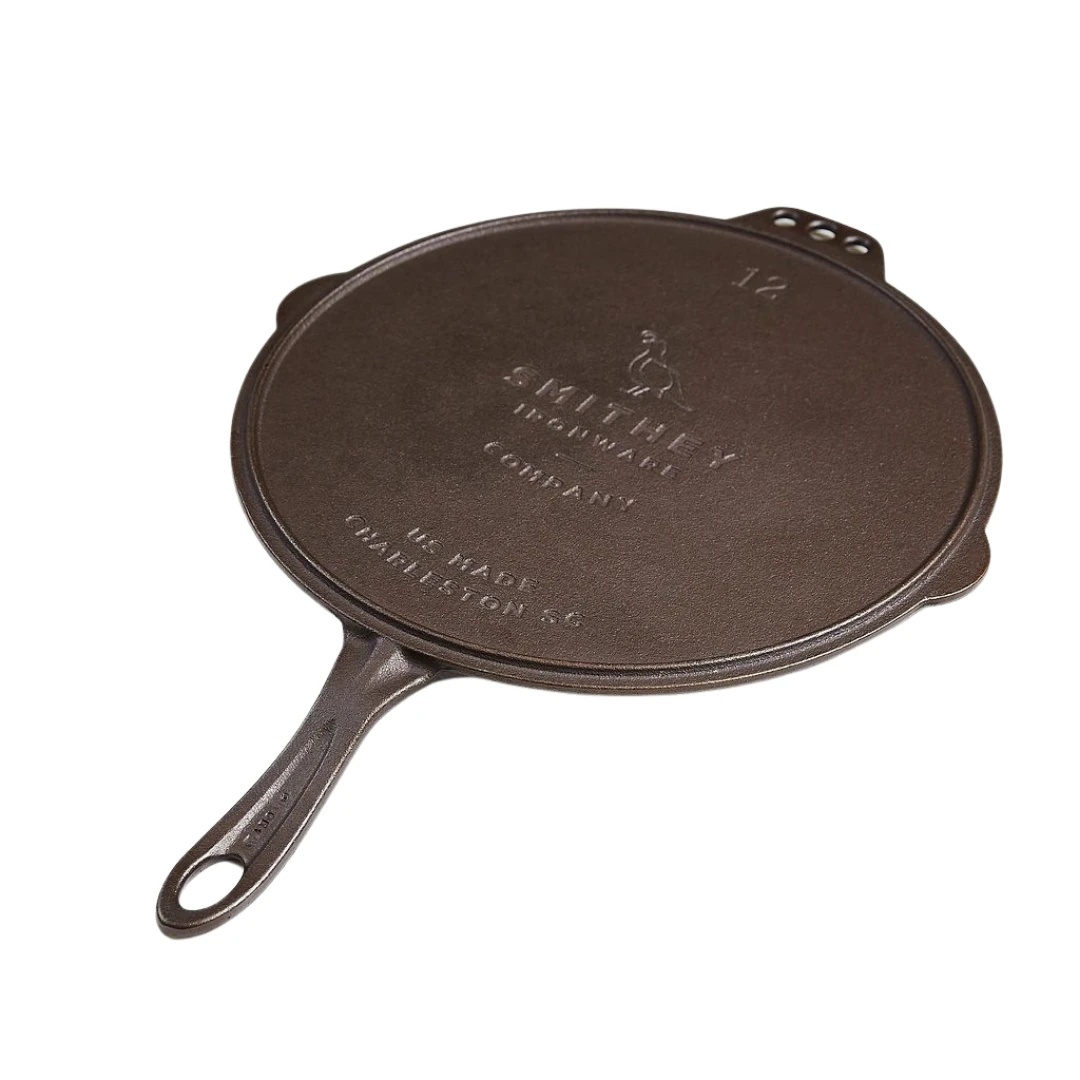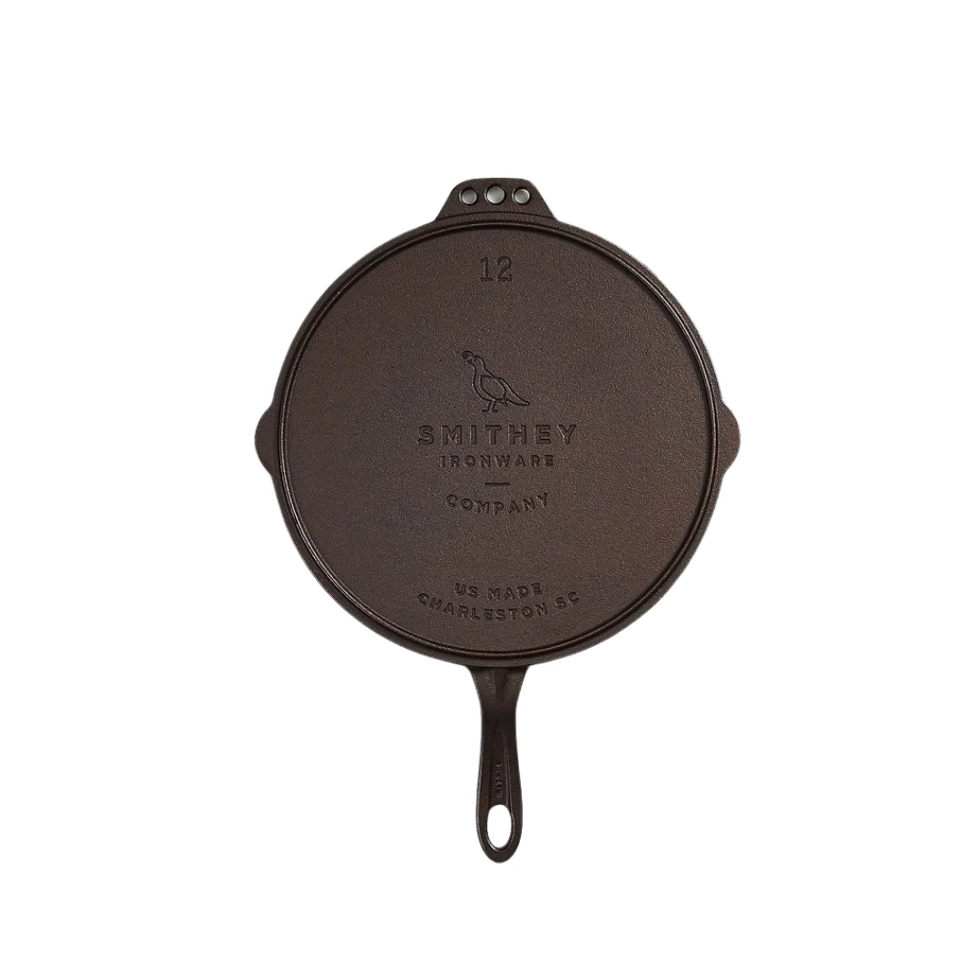 Smithey’s No. 12 Flat Top Griddle is your new everyday essential. Not only will this become your daily use griddle, but it also sized perfectly to fit on top of your No. 12 Skillet highlighting it’s use as a custom fit lid. Featuring Smithey’s signature polished cook surface, the No. 12 flat top is naturally non-stick and free of chemical coatings, Designed and made in the USA, each piece is engineered to maintain even and consistent heat. This flat top will become your go to for everything from pancakes to pizzas. Use it well.