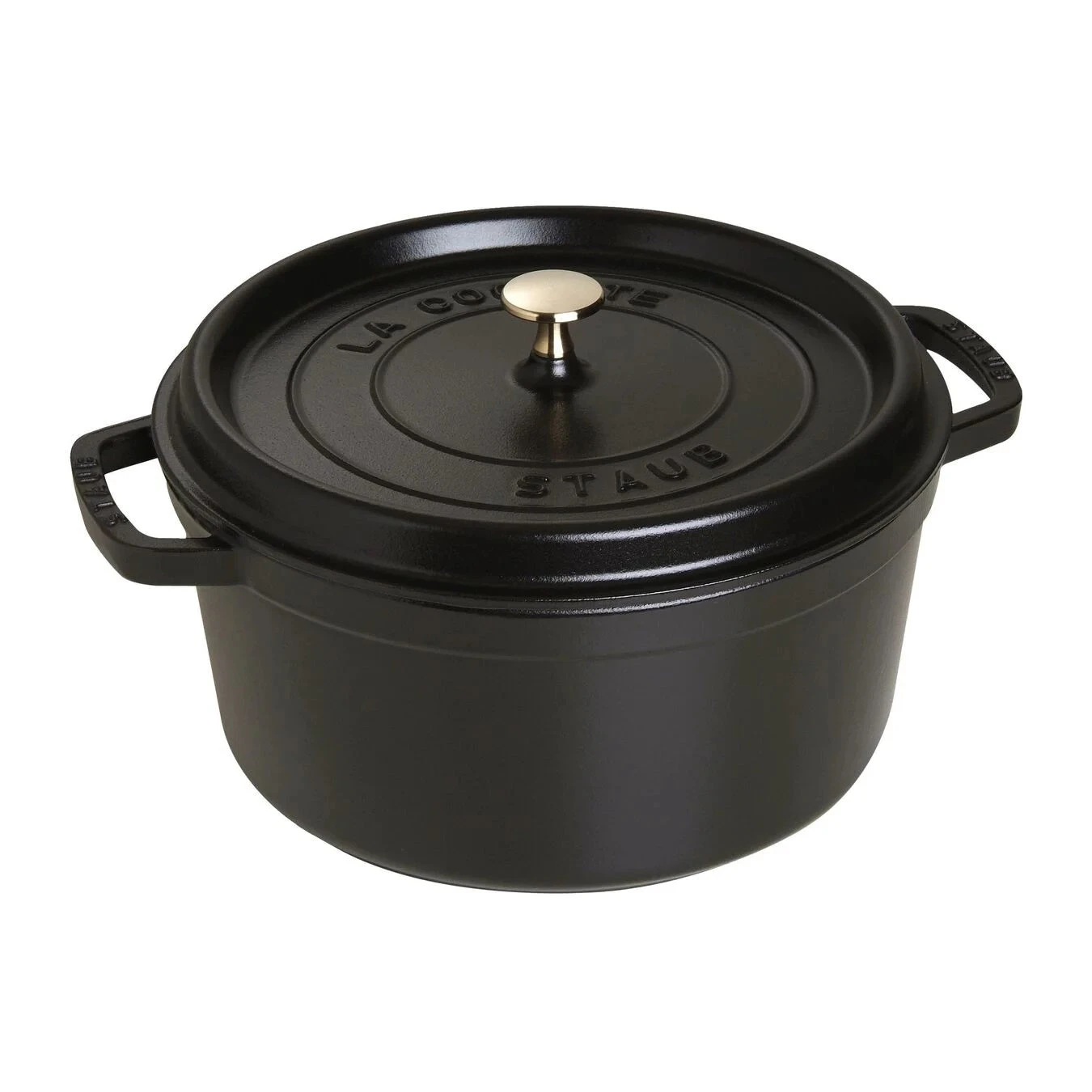 The Staub cocotte is unsurpassed for slow-cooking meats and vegetables to tender perfection, and for simmering hearty stews and soups. Cast iron possesses exceptional heat-retaining qualities, so the pot heats evenly throughout. The innovative lid features tiny spikes on the interior that continually release condensed liquid back onto the food, yielding moist, flavorful results. Staub’s special matte black enamel interior and self-basting spiked lid guarantee perfect browning and braising for flavor-enhanced food. With their exquisite enamel finish, each piece transitions beautifully from the kitchen to the table. From comfort food to sumptuous suppers, every dish is special when served in Staub. Staub enameled cast iron cookware is the choice of the world’s best chefs. With exceptional durability, it is perfect for day-to-day use in both gourmet home kitchens and prestigious restaurants around the world. Built to last a lifetime, these heirloom pieces can be passed from generation to generation.