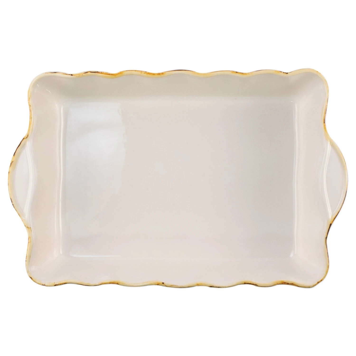 Featuring scalloped edges and a bright white hue, the Italian Bakers are part of VIETRI’s newest line of bakeware. Handcrafted of Italian stoneware in Umbria, this unique size and fun shape is perfect for all gatherings.