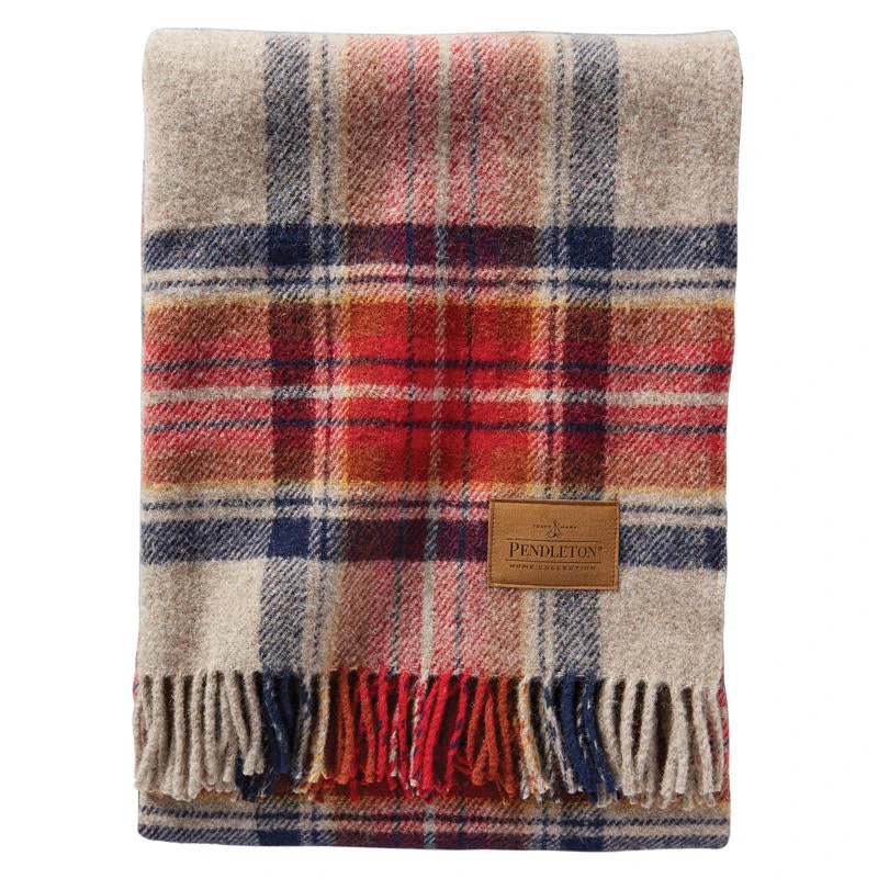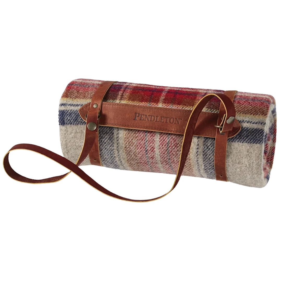 This pure virgin wool throw is softly napped and the perfect size to curl up with on the sofa or toss in the car. Each one is still woven in Pendleton’s American mills and comes with a convenient leather carriers. Called “steamer rugs” in the early 20th century, these blankets were a warm, welcome companion for those who traveled by horse-drawn carriage, train or boat. As a California customer raves, “Just right for a picnic, stadium or just around the house.”