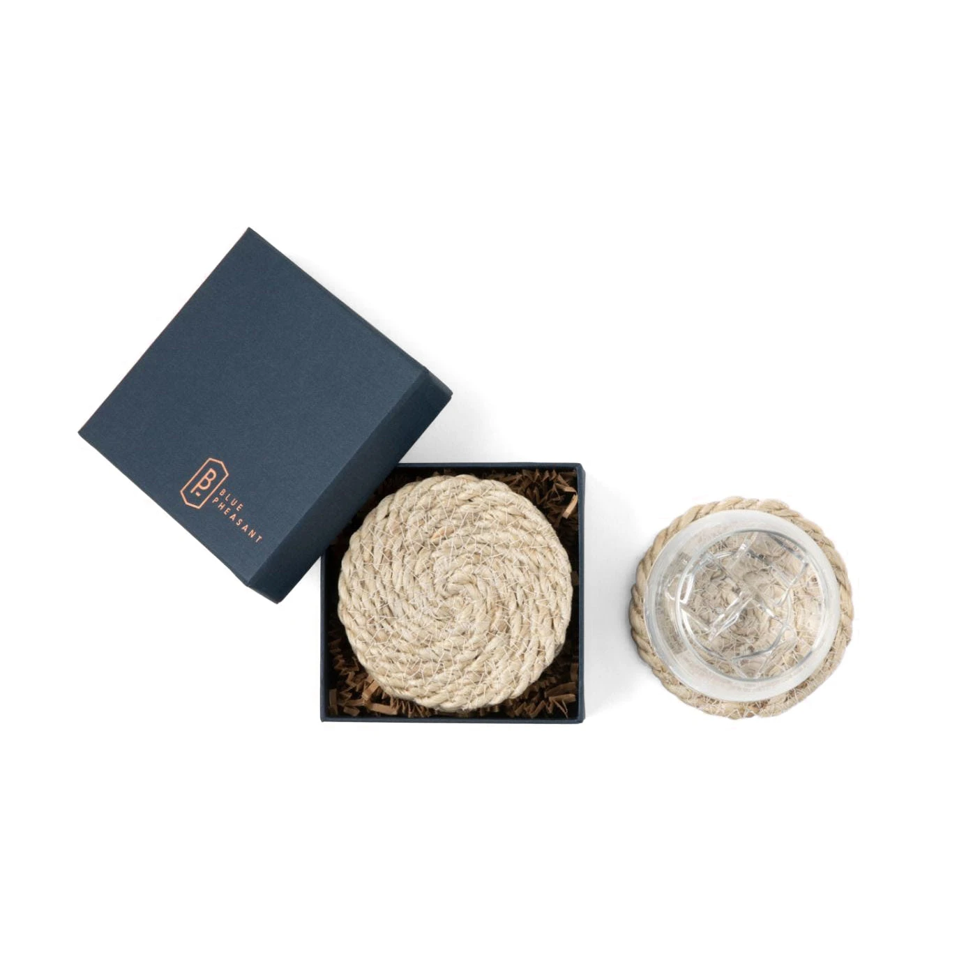 Twisted jute is hand spun into a perfect spiral making the Whitley coasters a perfect resting place for a well-made cocktail.